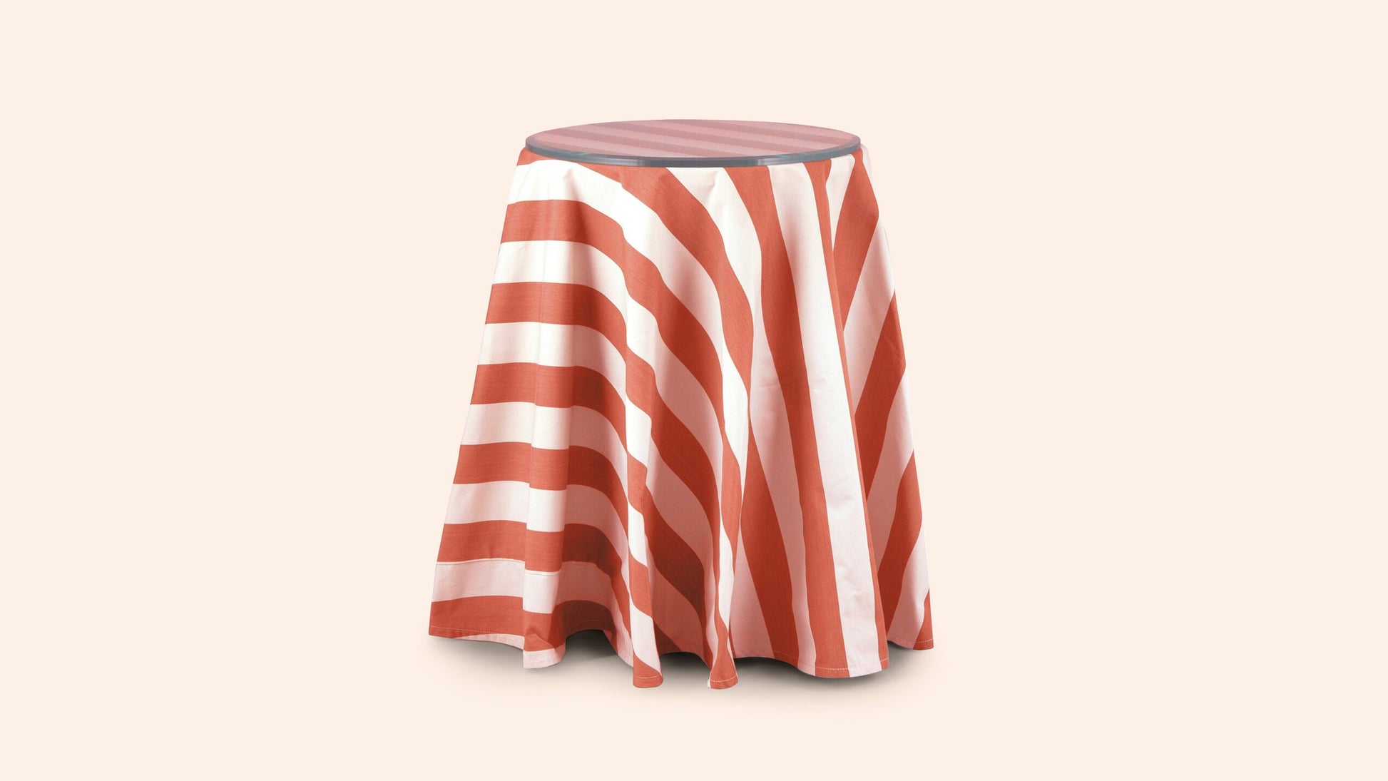 The camila draped table has a simple circular frame with two inner shelves, and is available in our all of our own fabrics.