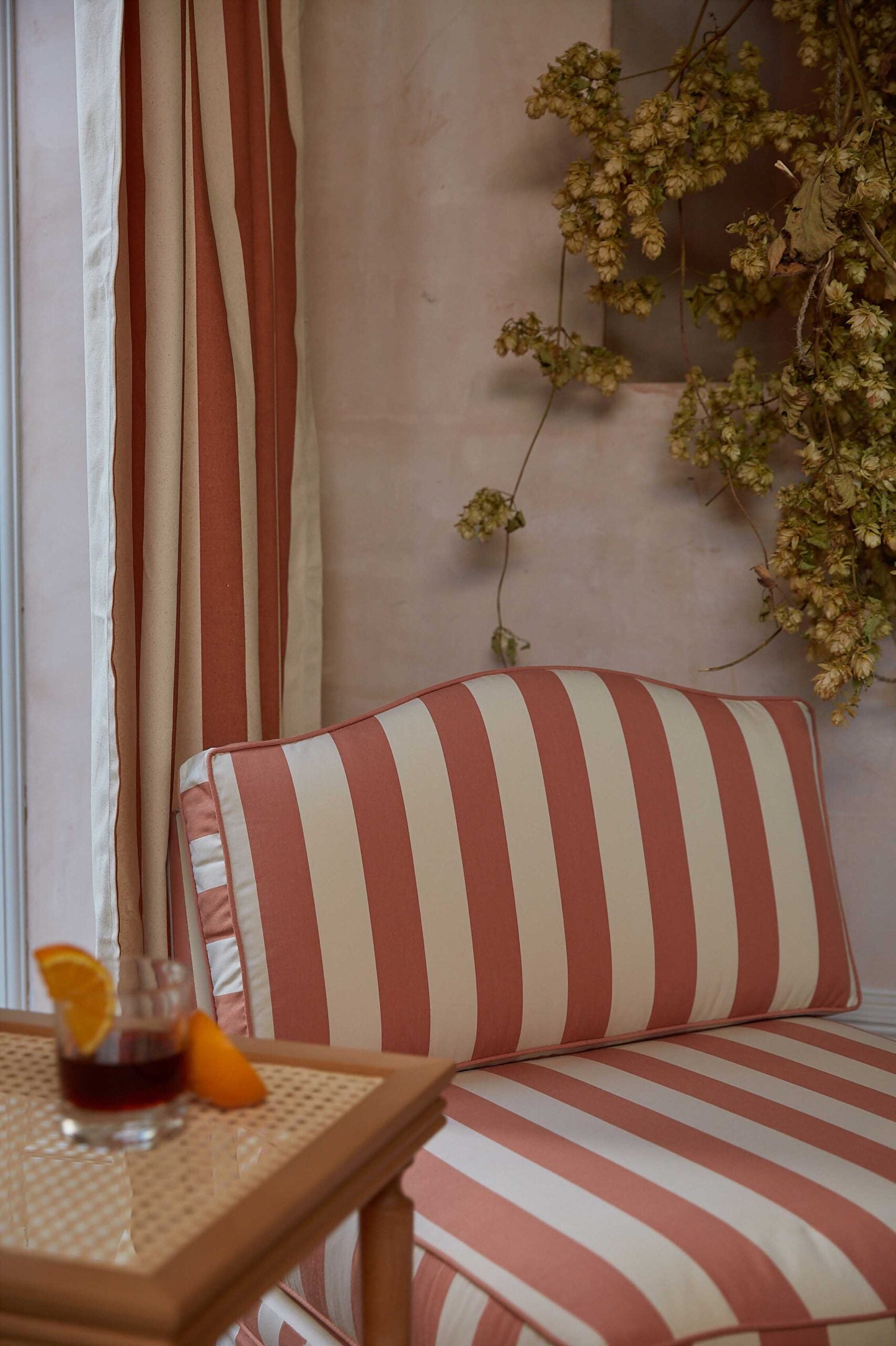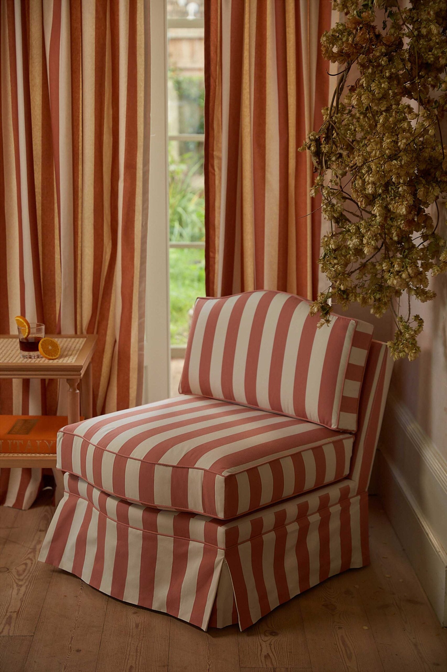Note: The Sonia Stripe fabrics are not suited to the skirt on our Felix. You will therefore see upholstered legs. Photo to follow