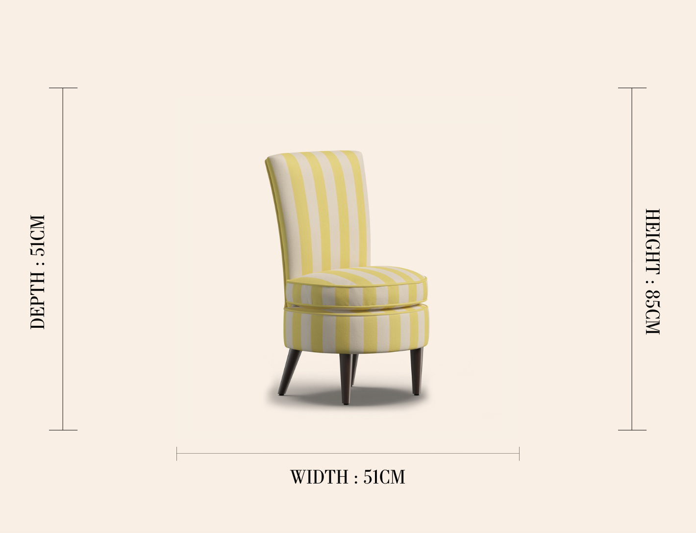 This beautiful occasional chair is offered in many different fabrics within our collections, it has a softly rounded back and an over-stuffed seat cushion, meaning comfort is never sacrificed in the pursuit of elegance.