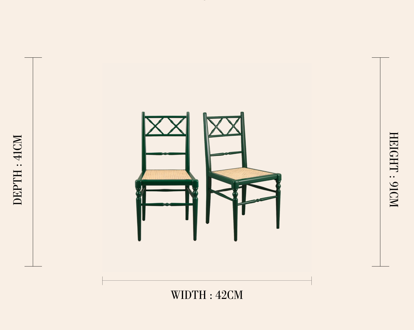 Chiara is a lacquered wood dining chair with a natural woven cane seat and would suit antique or contemporary dining tables.