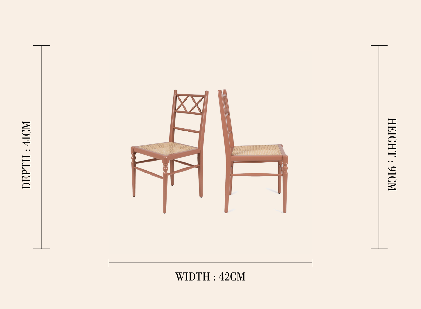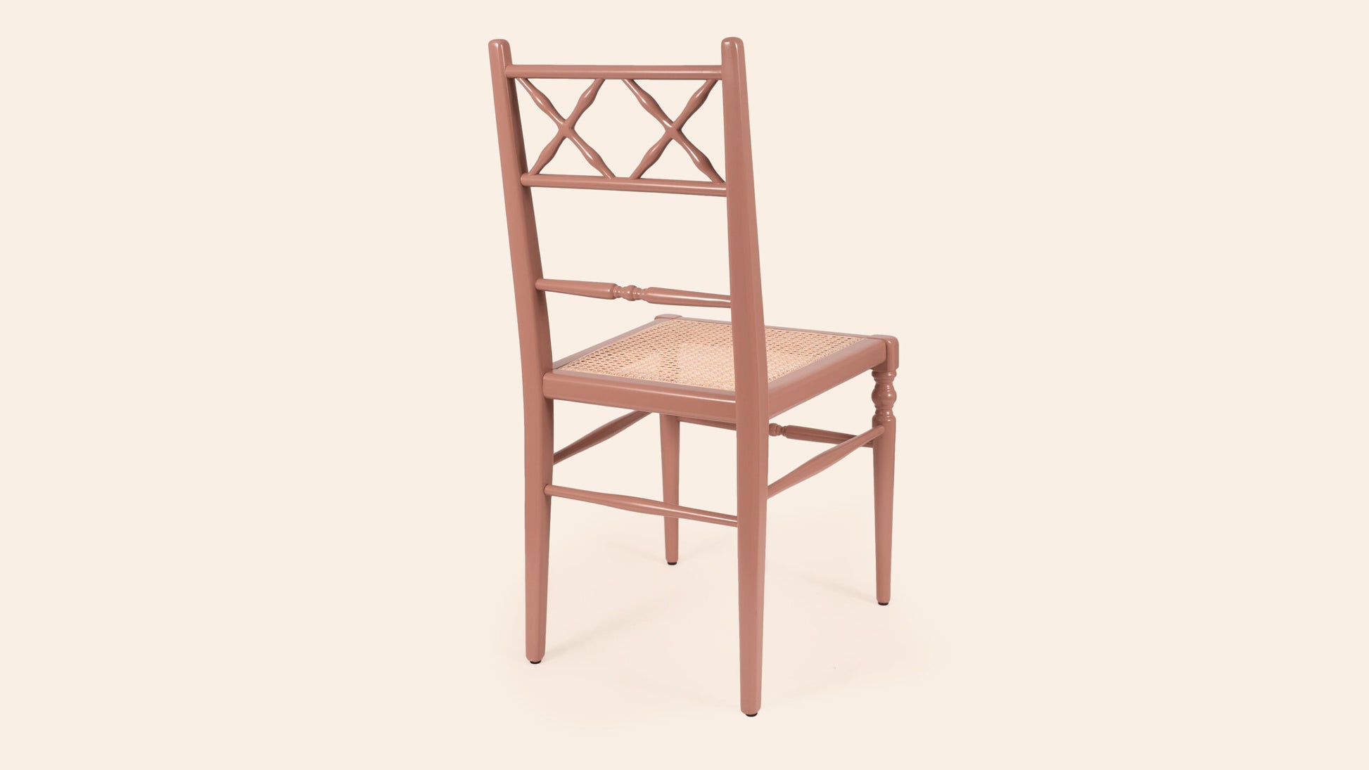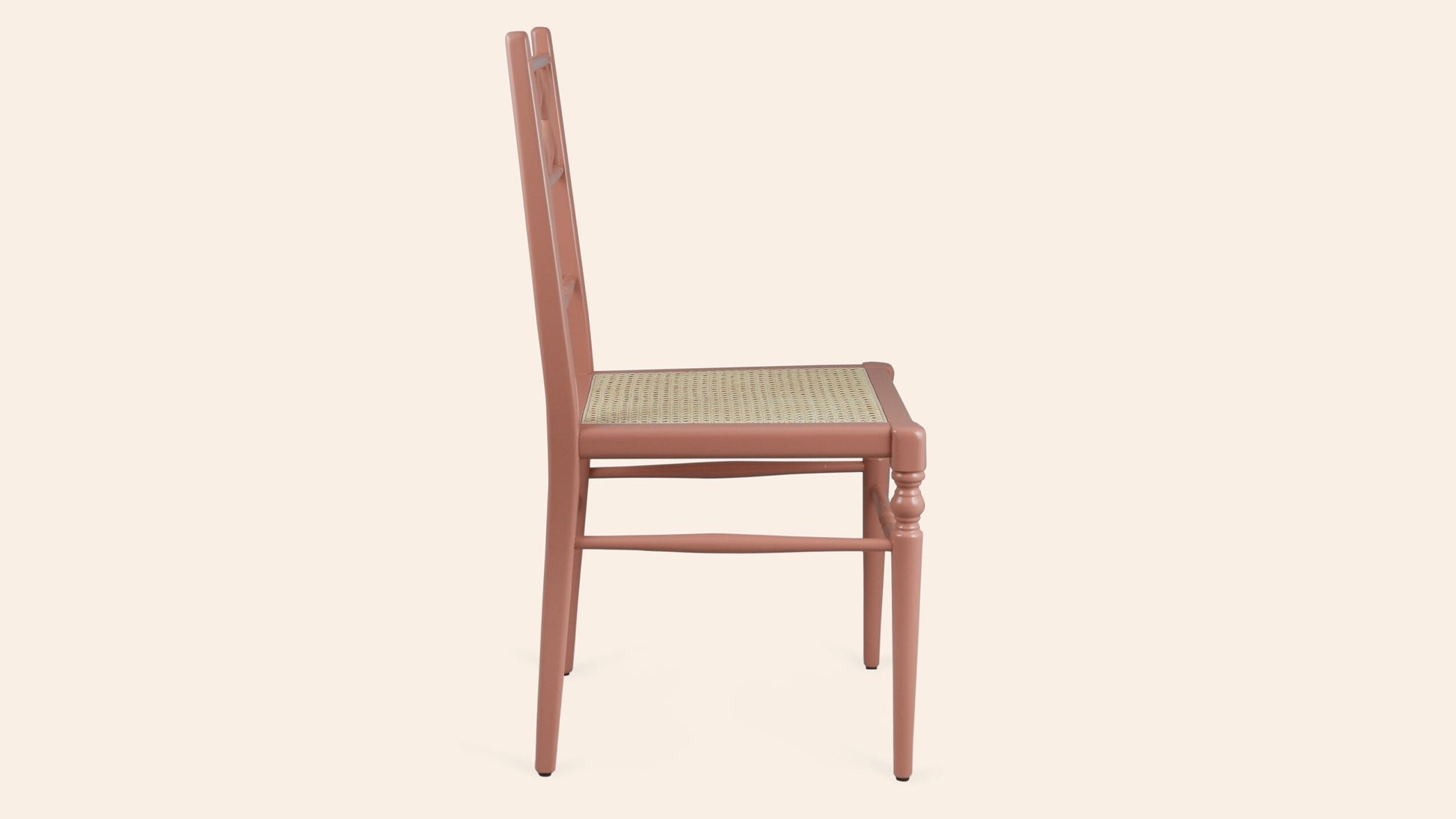 Chiara is a lacquered wood dining chair with a natural woven cane seat and would suit antique or contemporary dining tables.