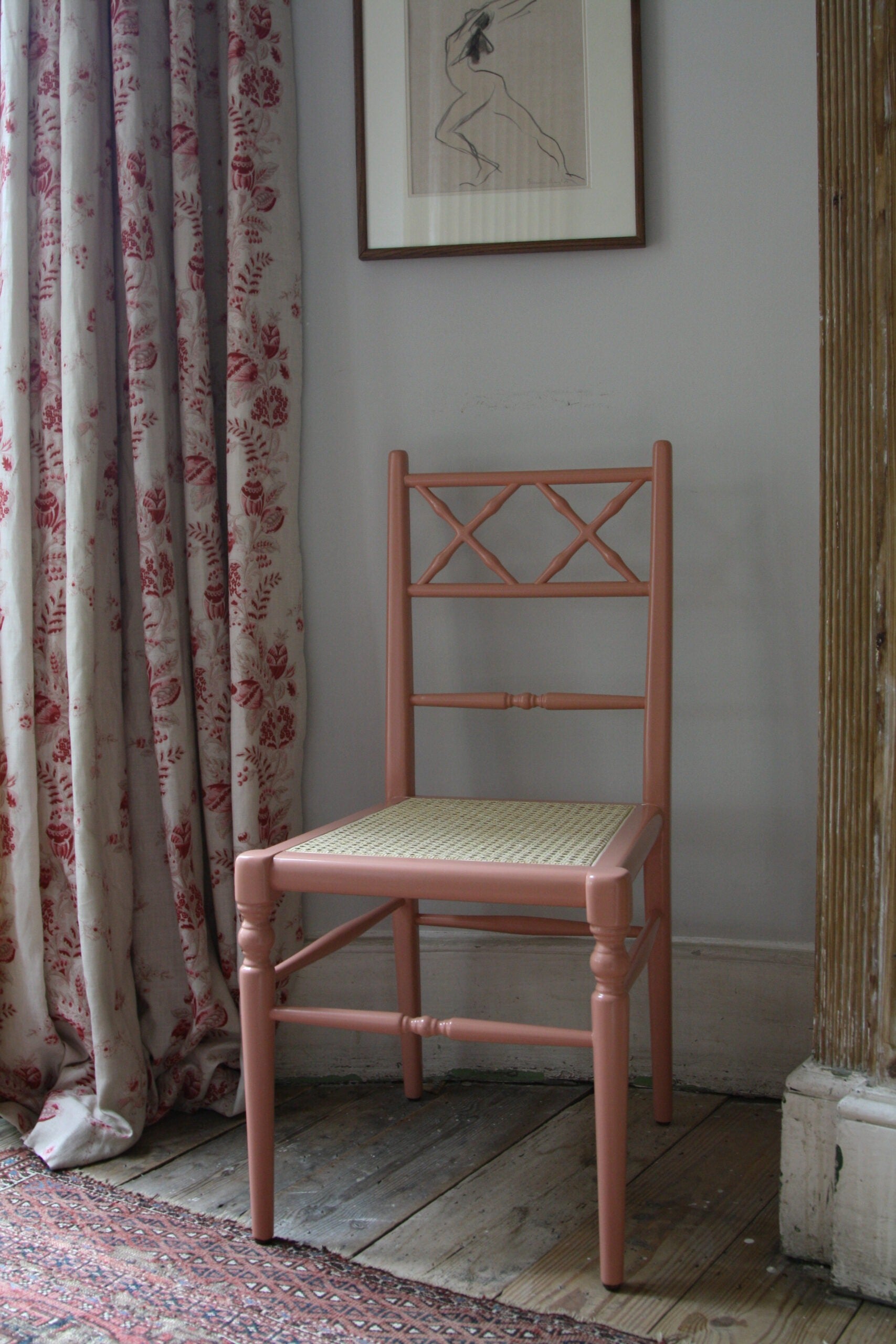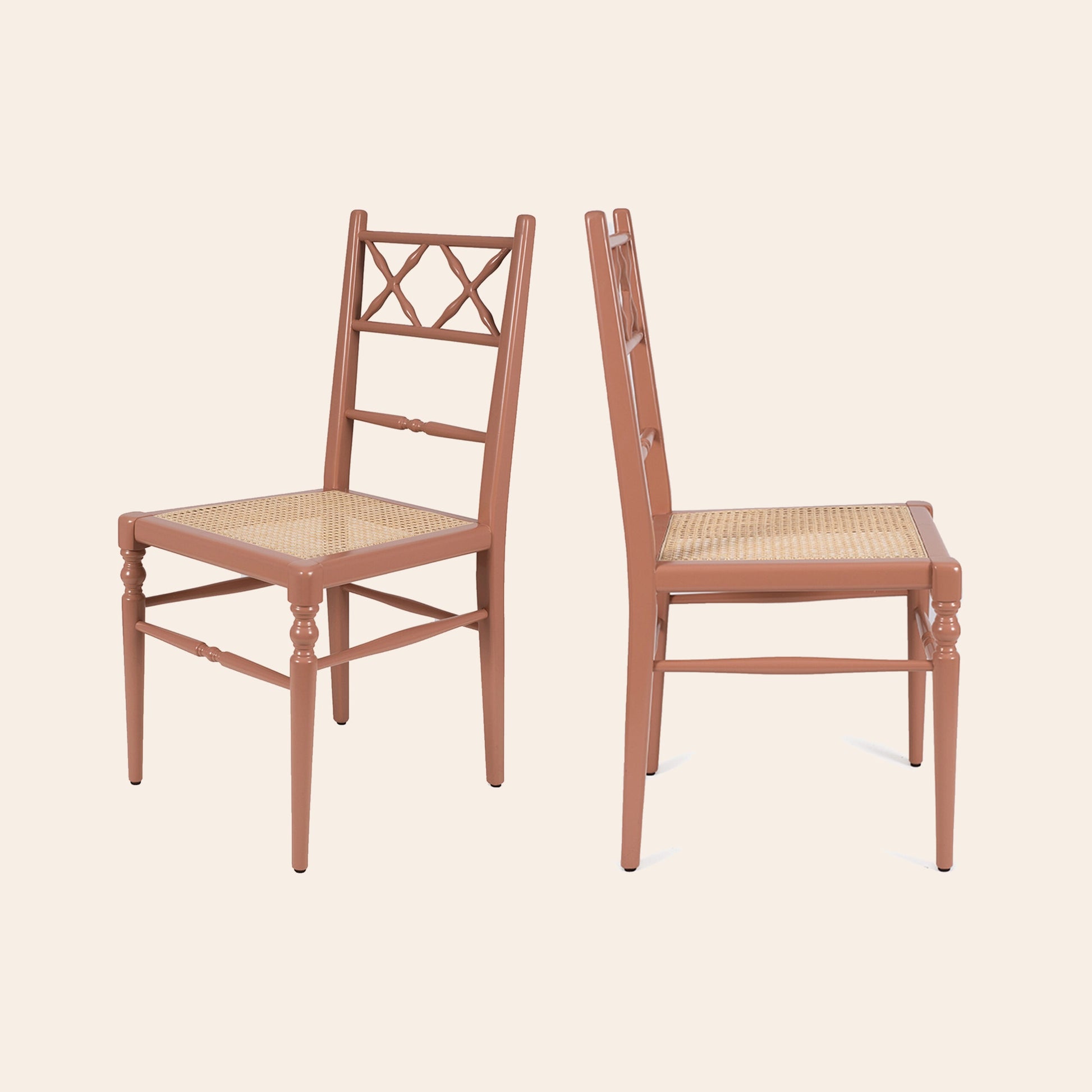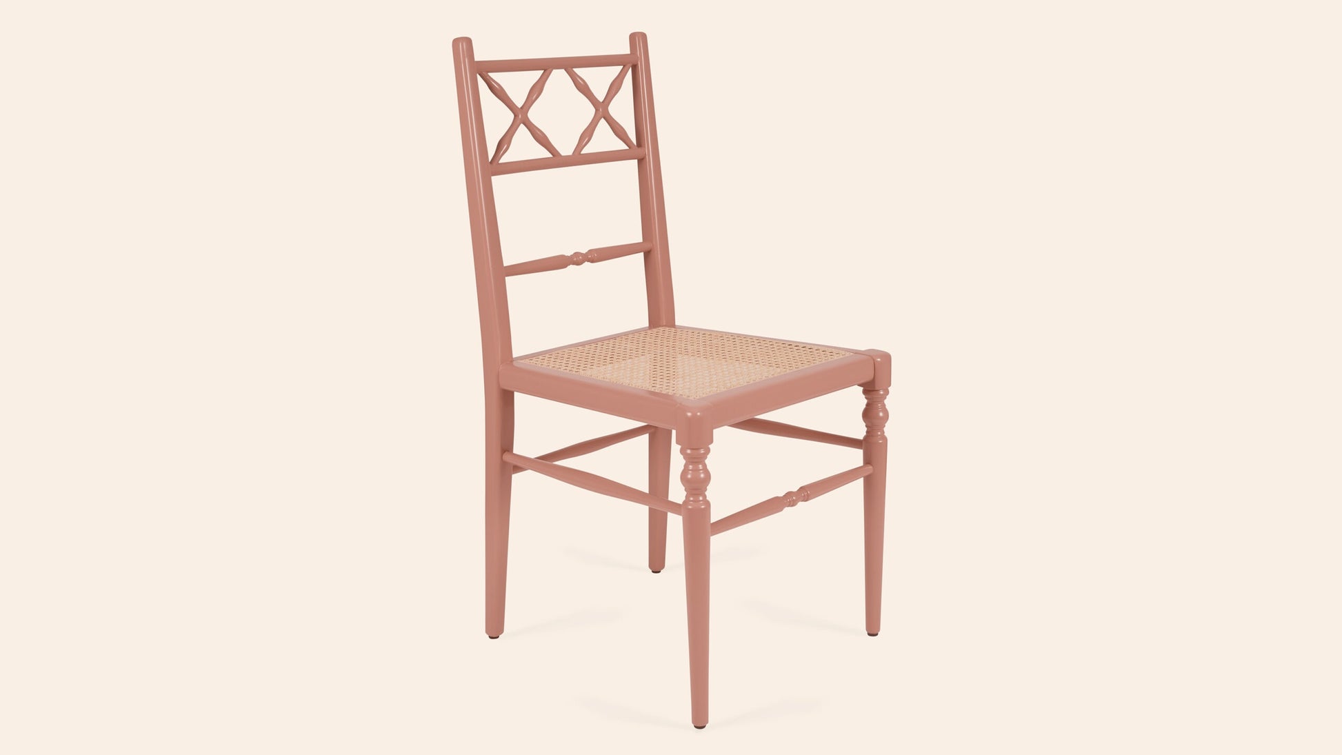Chiara is a lacquered wood dining chair with a natural woven cane seat and would suit antique or contemporary dining tables.