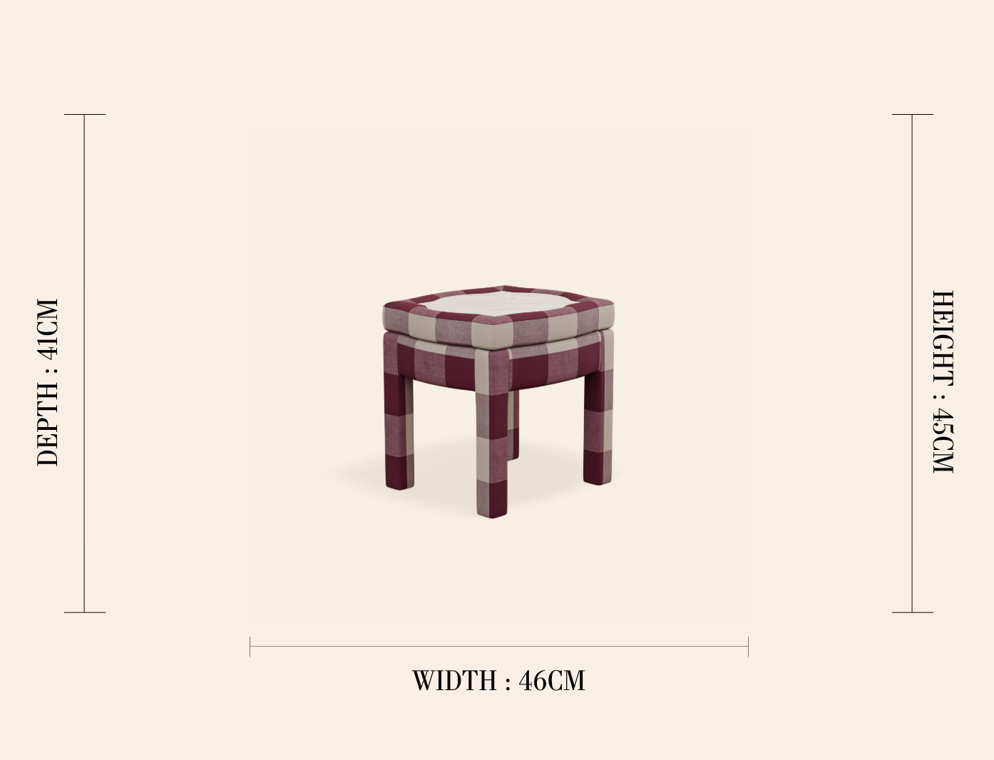 Our little Piero footstool is your new best friend – it has a flip top cushion where Portuguese Estremoz marble is the surface on one side, and a cushion on the other side, meaning it can be used as a side table, stool or foot-stool. It’s perfect for floating around your sitting room as a drinks side table or sitting extra bums on seats, or even as a dressing table stool.