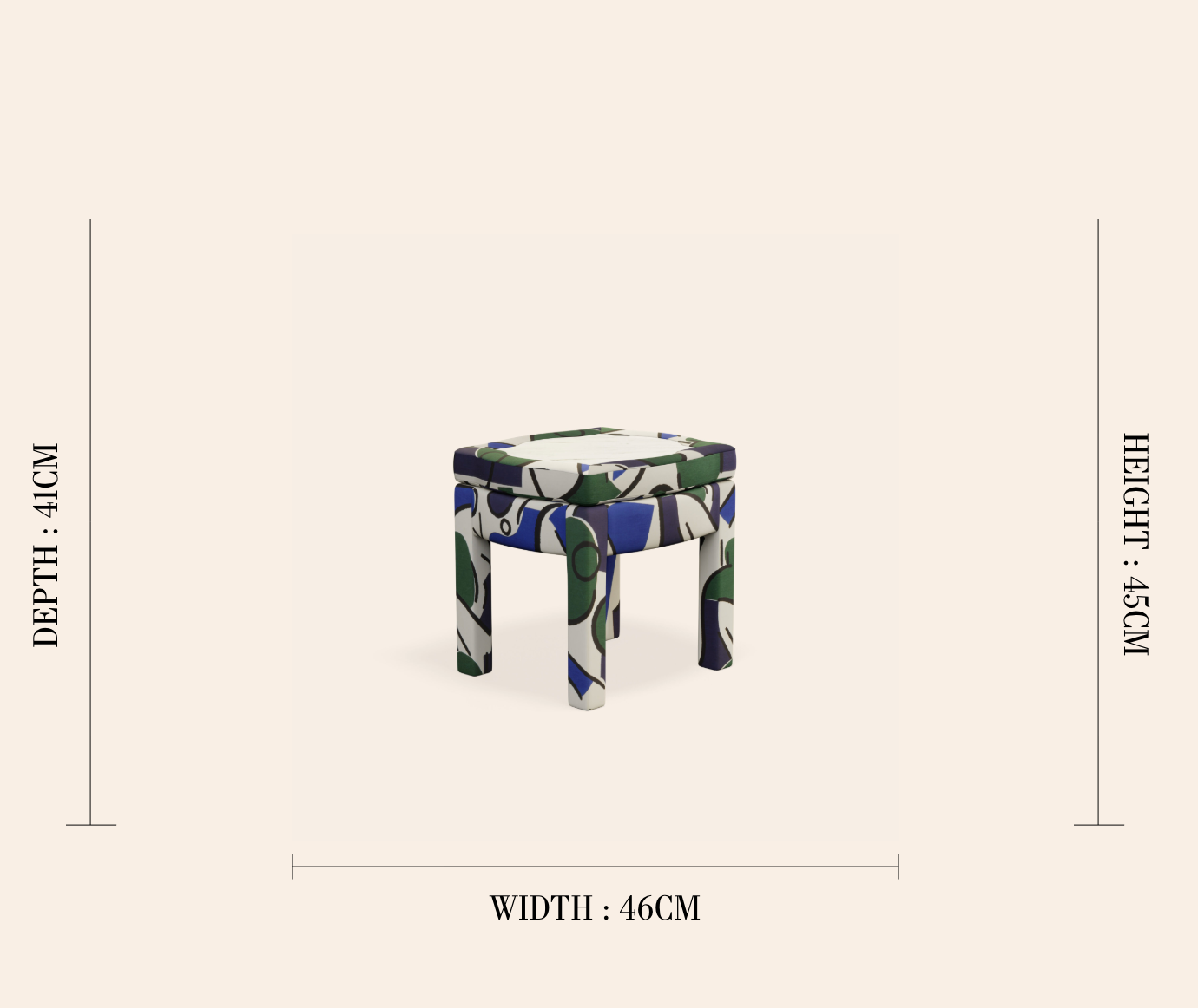 Our little Piero footstool is your new best friend – it has a flip top cushion where Portuguese Estremoz marble is the surface on one side, and a cushion on the other side, meaning it can be used as a side table, stool or foot-stool. It’s perfect for floating around your sitting room as a drinks side table or sitting extra bums on seats, or even as a dressing table stool.