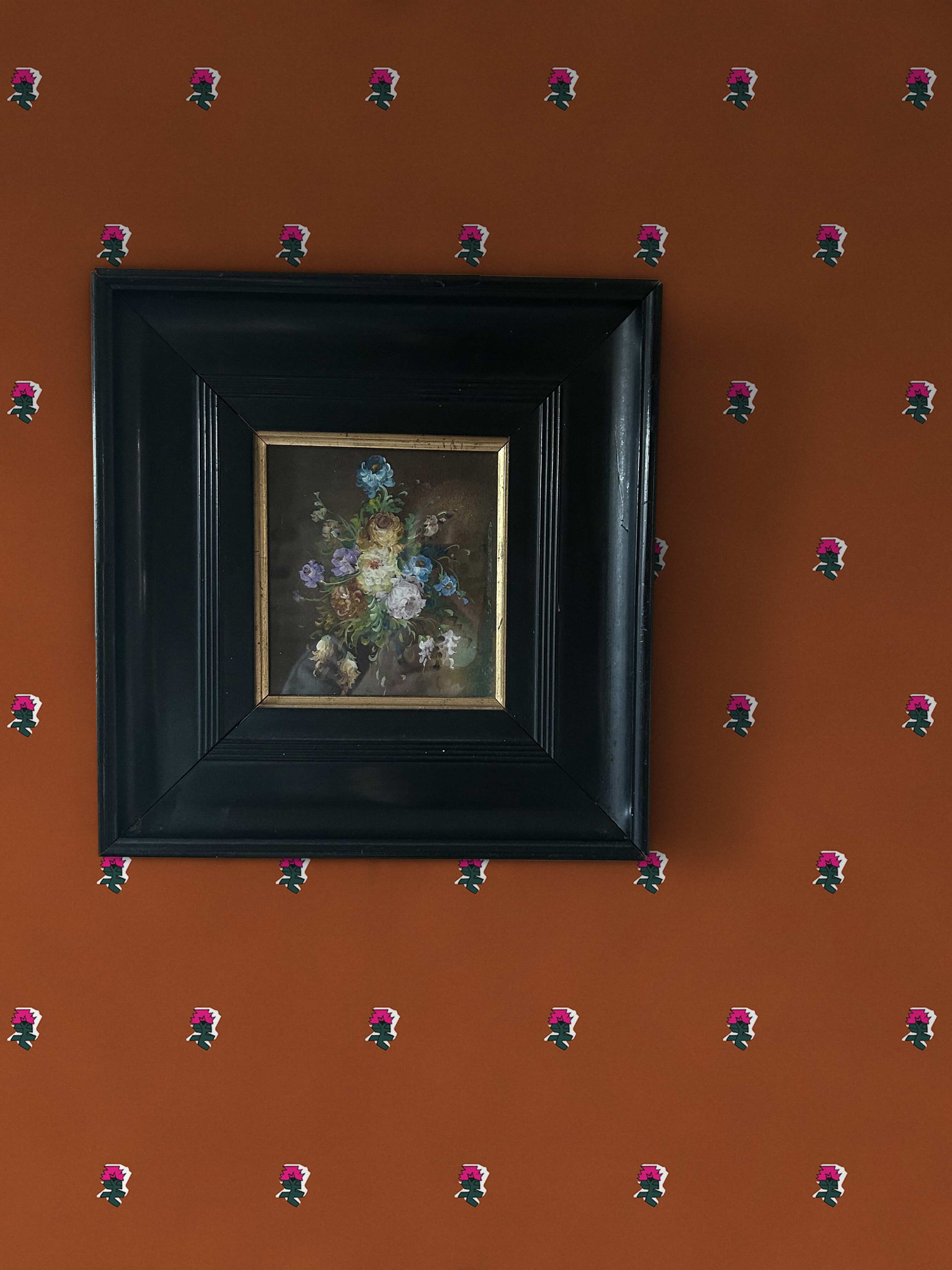 The colours and style of this print are a playful nod to mid-century charm, reimagined through a modern, digital lens. It’s where "granny-chic" embroidery meets a vibrant glow up.