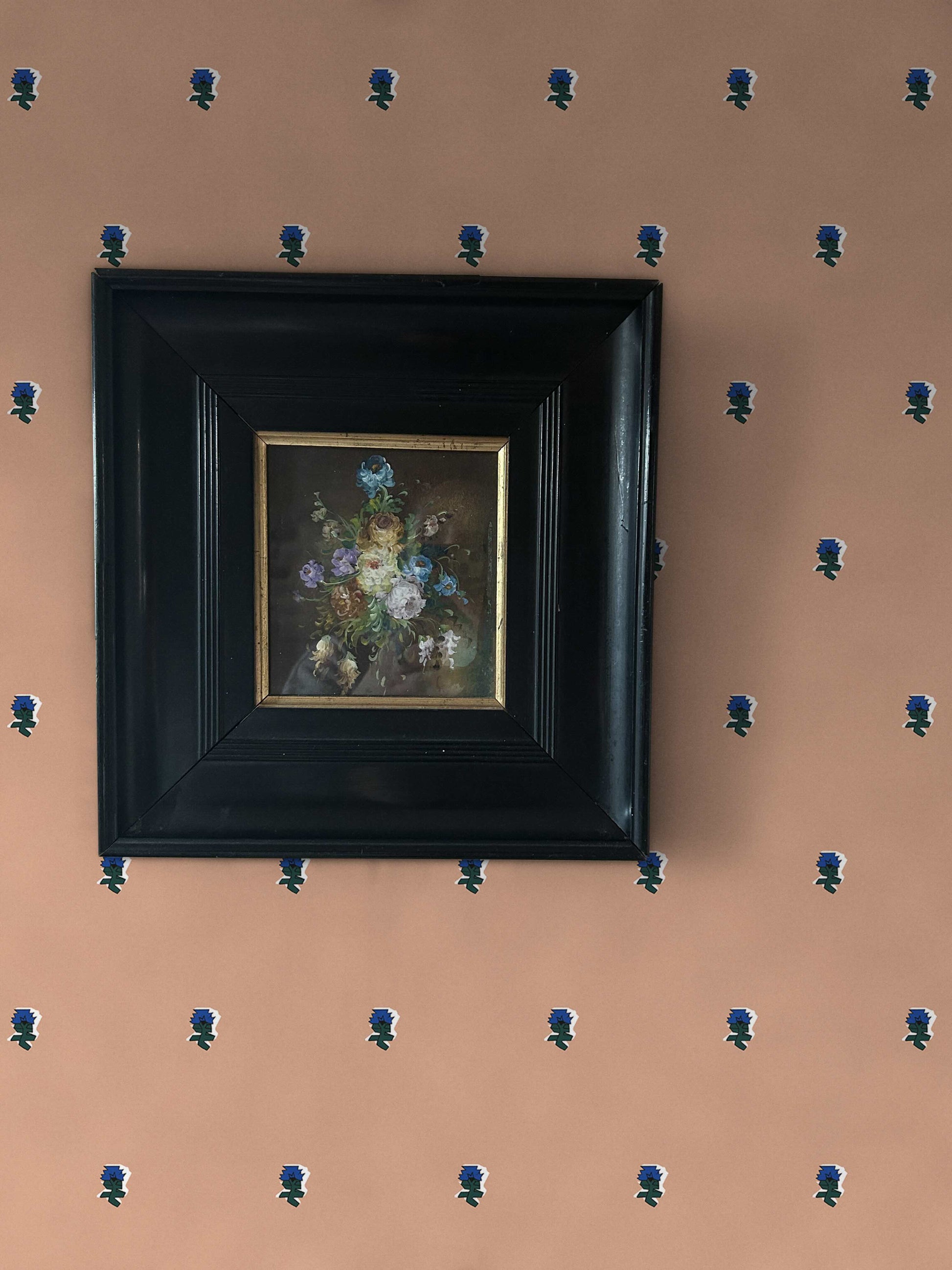 The Sweetpea Colourway. For the hopeless romantics with a modern edge, Sweetpea is about to be your new favourite view. Featuring a nostalgic palette of blushing pink and a bold blue flower, this design captures the delicate charm of a country garden through our signature digital lens.